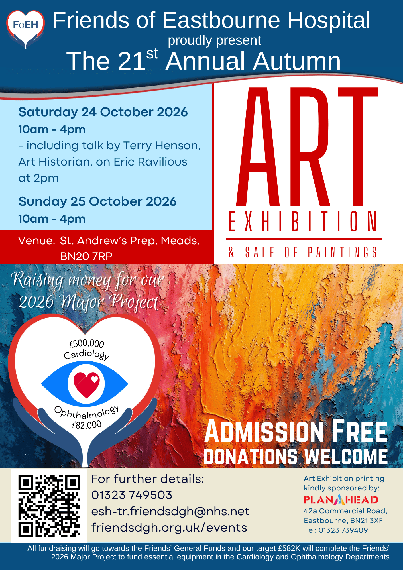 If you or any of your friends would like to exhibit and sell your paintings, please download an entry form below, or call the Friends Office on 01323 749503 to obtain one. A small hanging fee of £5 per picture and a donation of 20% of the selling price will go towards our 2026 Major Fundraising Project, to raise £582K for essential equipment in both the Cardiology and Ophthalmology Departments of the DGH.